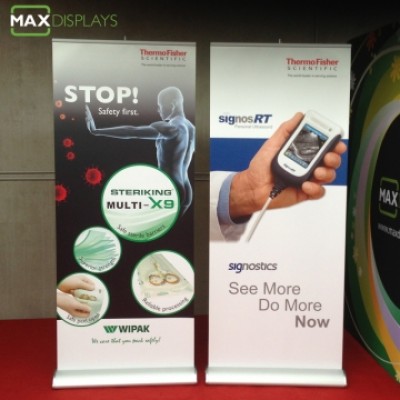 All our Maxstand series comes with eco friendly fabric print as standard. We can also print on non curl PET laminated material if needed.